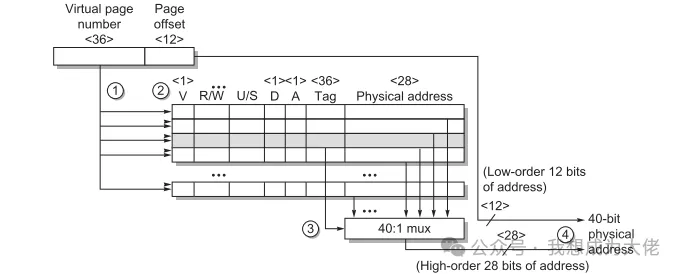 第一,如何映射?由于访问辅助存储器代价过大,因此操作系统会允许将块放在主存的任意位置来降低页错误(发生缺失),降低访问辅助存储的可能性,相当于全相联映射。页式存储的虚拟地址的索引过程已在前面有过介绍。