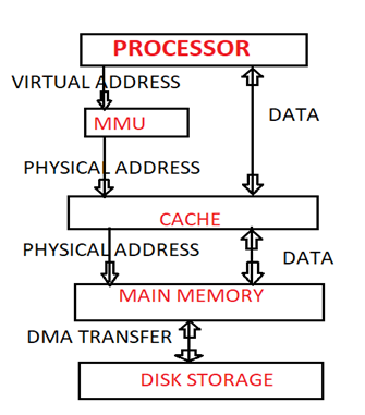 虚拟存储器技术使得主存储器和辅助存储器形成两级存储层次,主存可看作是辅助存储器的缓存。但虚拟存储器主要由操作系统负责管理,硬件为其提供支持,这与高速缓存明显不同。