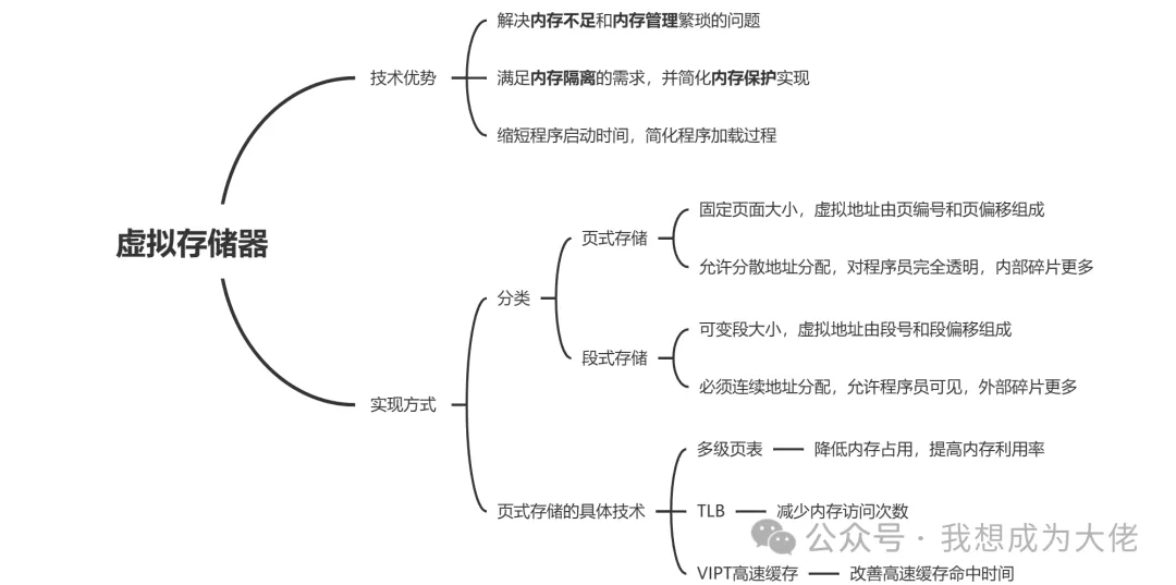 虚拟存储器技术还有其他优势,比如简化内存保护机制的实现。在虚拟存储器技术出现之前,内存保护往往需要直接管理物理地址,并通过软件层面进行各种边界检查,既复杂又容易出错。
