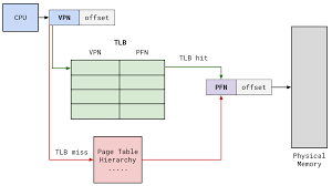 TLB作为页表的缓存,因其规模较小常常用全相联映射的实现方式。页表的访问地址是虚拟地址中的页编号字段,因此通过虚拟地址页编号与TLB中所有的有效Tag进行比较的方式进行索引。如果命中,则使用索引出的物理地址编号与虚拟地址偏移组合形成的地址访问内存;如果缺失,则需要访问内存中或下一层级TLB中(TLB也可像高速缓存一样,组织为多层次)的页表。