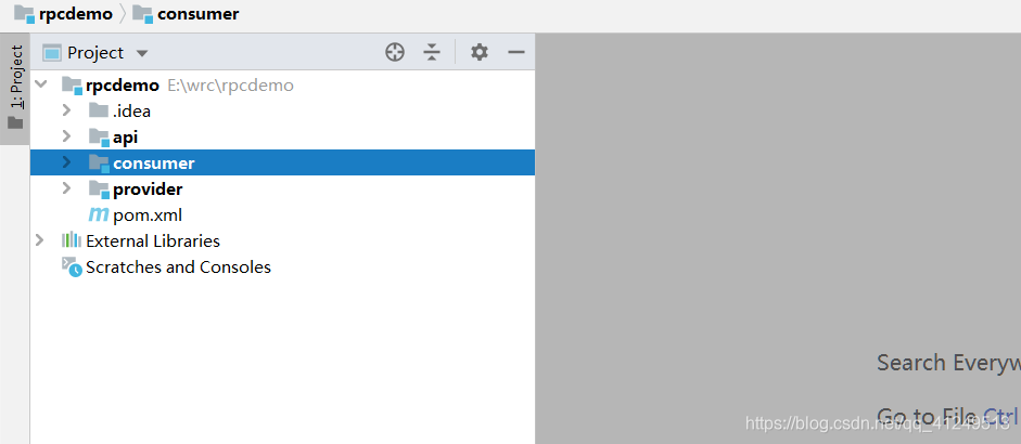 首先创建看看项目结构,我分成了3个服务,api是公共的接口服务。