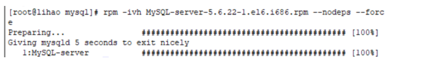 输入rpm -ivh MySQL-server-5.6.22-1.el6.i686.rpm --nodeps --force