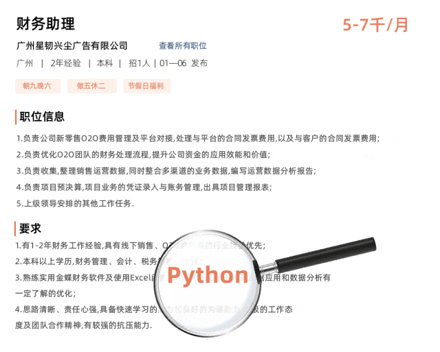 现在各大高薪热门的岗位JD上,Python已经成为了重要的加分项, 上招聘网站看一下,你就会发现许多岗位都写着**“会Python优先”,而且开出的工资还很高!”**