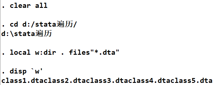 local w:dir . files "*.dta" // .表示工作路径为当前用户默认目录