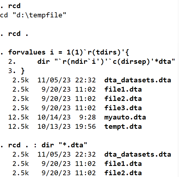 filelist, dir("D:\tempfile") pat("*.dta")list //命令中的dir是指定当前路径