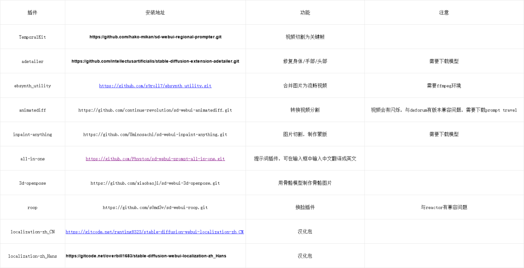 我也整理了常用的一些插件,例如提示词翻译插件,换脸插件,骨骼插件,修复插件等等,每个插件我都做了注释和说明,让你更好地使用。