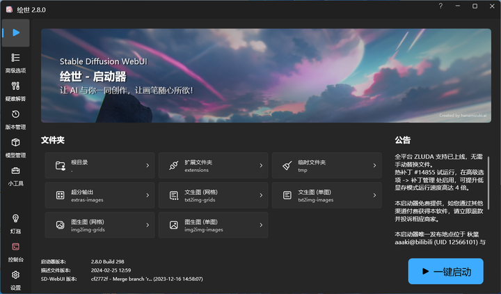 整合包用的是绘世启动器安装,无需用夸克或者百度网盘下载庞大的内核。