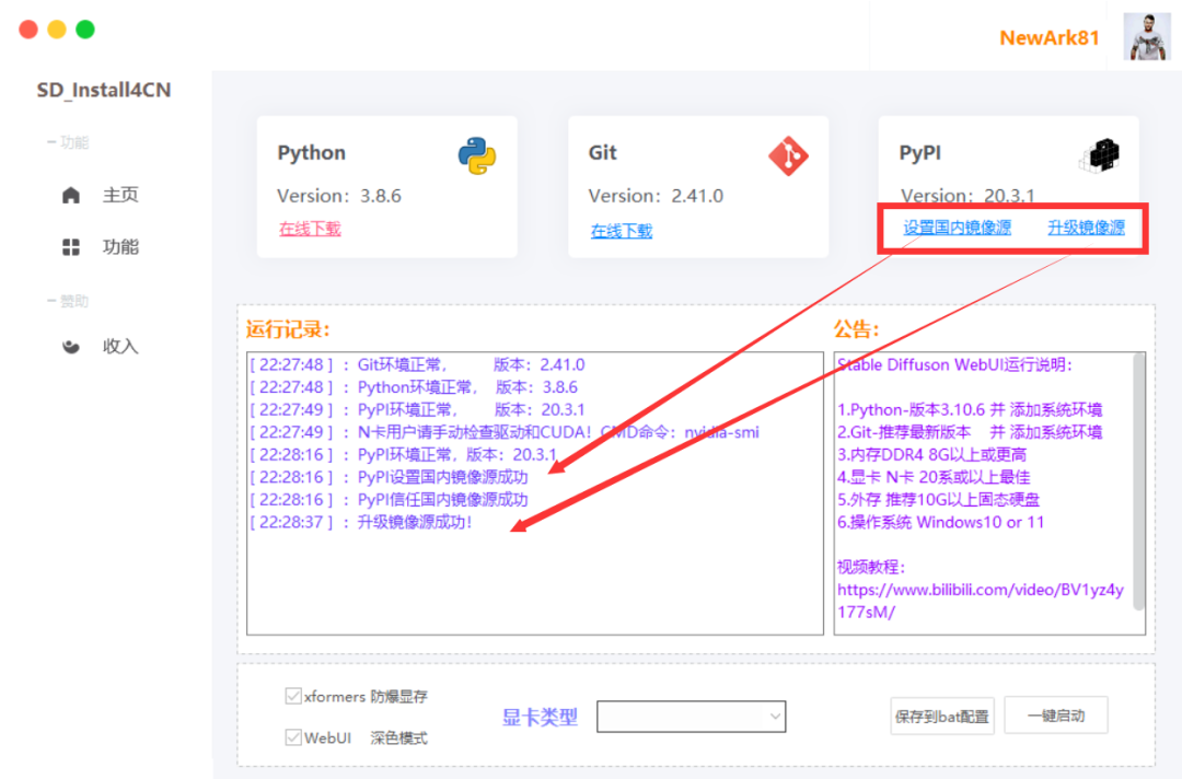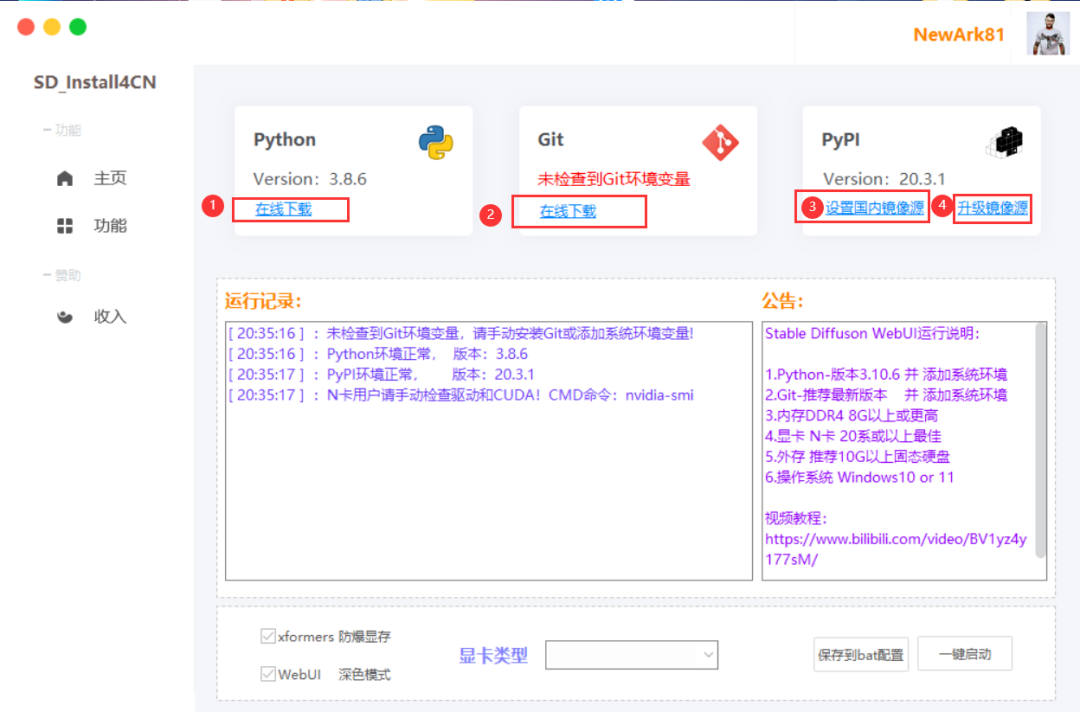 我们这里先打开 SD_install4CN v1.0.4_2 程序,然后根据图上顺序安装环境。