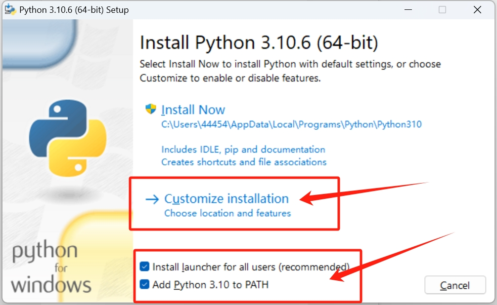 下载完成之后,我们运行python安装程序,切记“Add Python 3.10 to PATH”一定要勾选上,不然的话会出问题!一定要勾选!