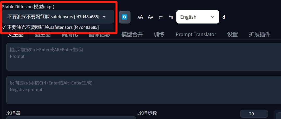 首先在页面的左上角选择一下当前要使用的模型,等待一下加载好模型即可。
