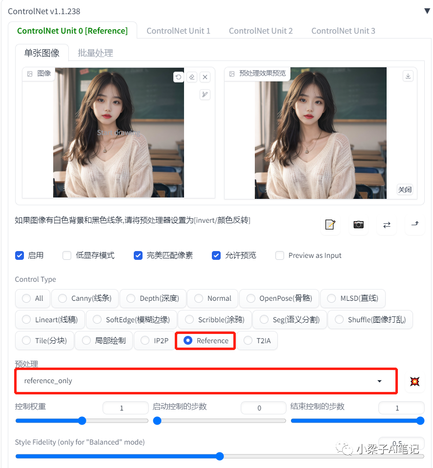 三. 使用****ControlNet预处理Reference only实现人脸一致