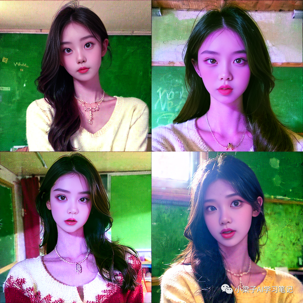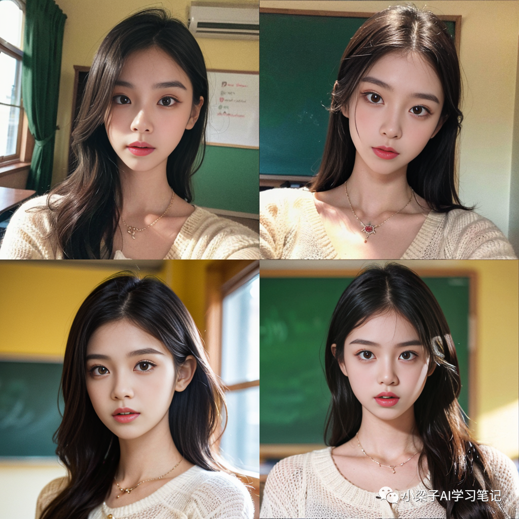 生成图片的效果好很多了,但是4张美女的人脸也不一致了。