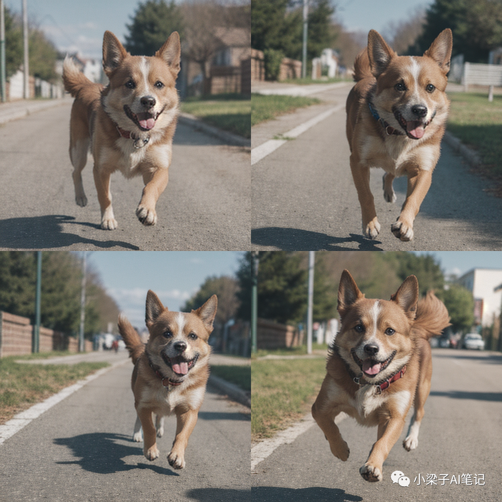 正向提示词:best quality, ultra-detailed, masterpiece, finely detail, highres, 8k wallpaper,a running dog
