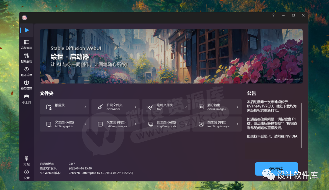 **第4步:**点击启动器的右下角的按钮,等待加载运行,然后在弹出的网页中就可以尽情的使用Stable Diffusion: