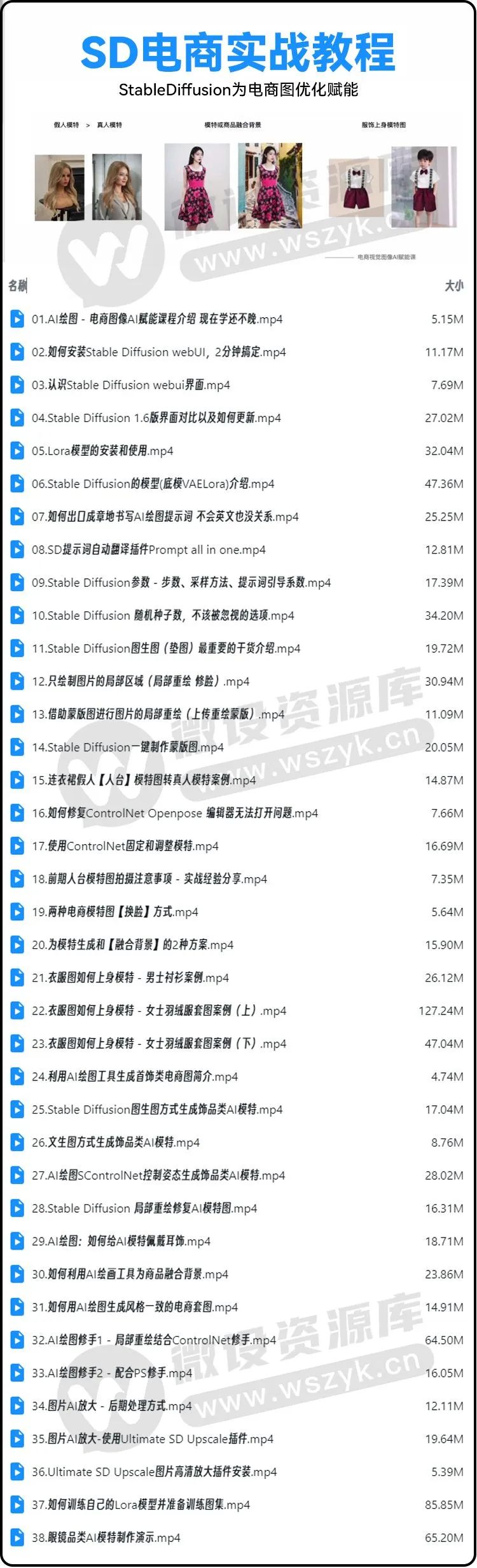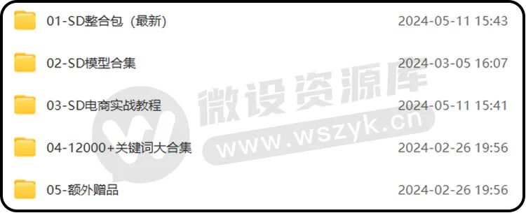 资料包包含SD整合包、SD模型合集、SD电商实战教程、AI绘画12000+关键词大合集和一些额外赠品