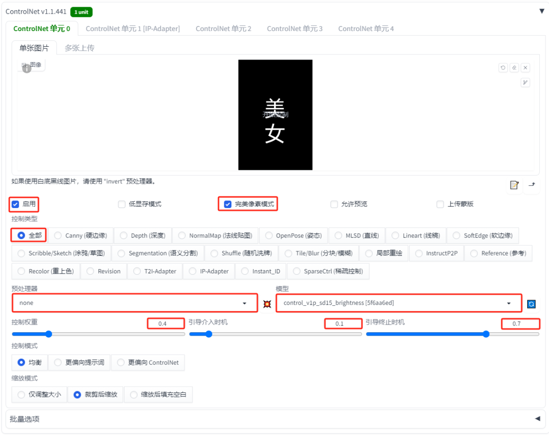 上面的实现方式有时候出来的效果图,会将字体融入服装成为服装的一部分,也是存在这种特效玩法的。如果想实现这种效果, 可以将控制权重适当调大一点(比如0.5),会将字体效果变的更明显一些,也很容易出现字融美女服装的效果。