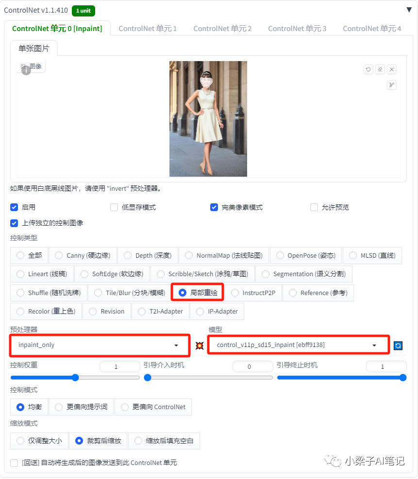 (1)不要将修复大模型与ControlNet一起使用,因为它们通常没有经过该模型的训练。