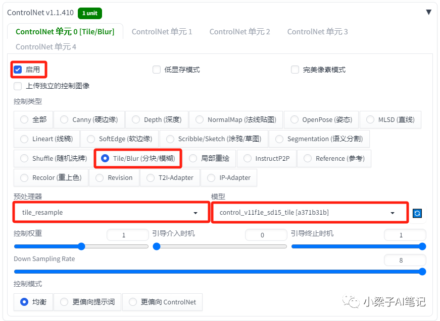 控制类型(Control Type): 选择“Tile/Blur(分块/模糊)”