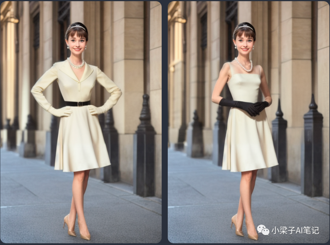 下面的图像是使用重绘强度值设置为1生成的。ControlNet的局部重绘允许您完全重新生成服装,而无需牺牲全局一致性。