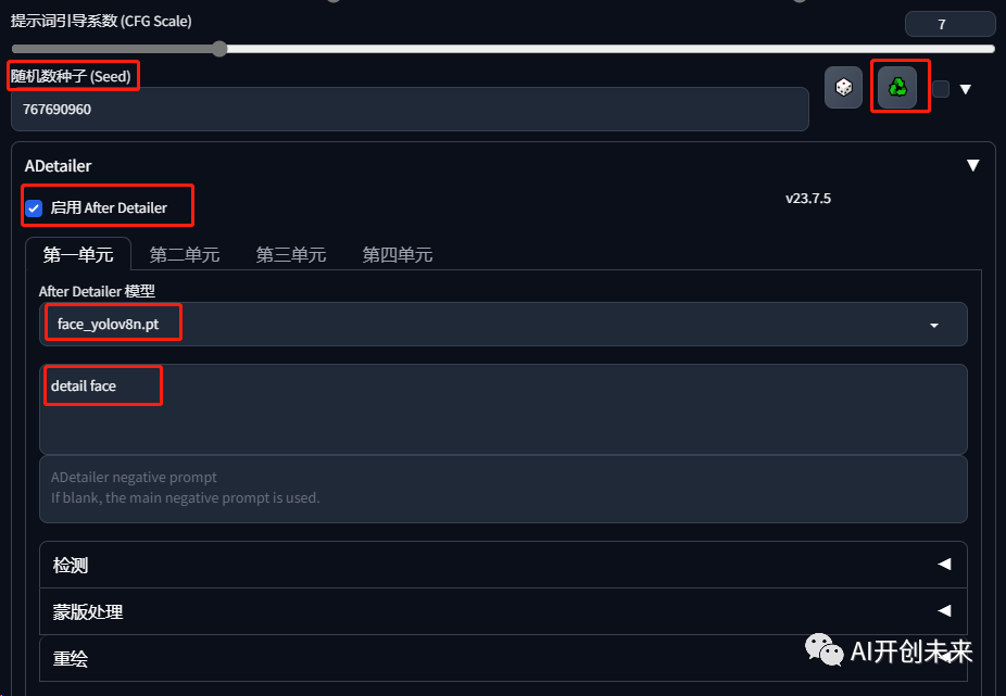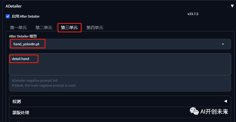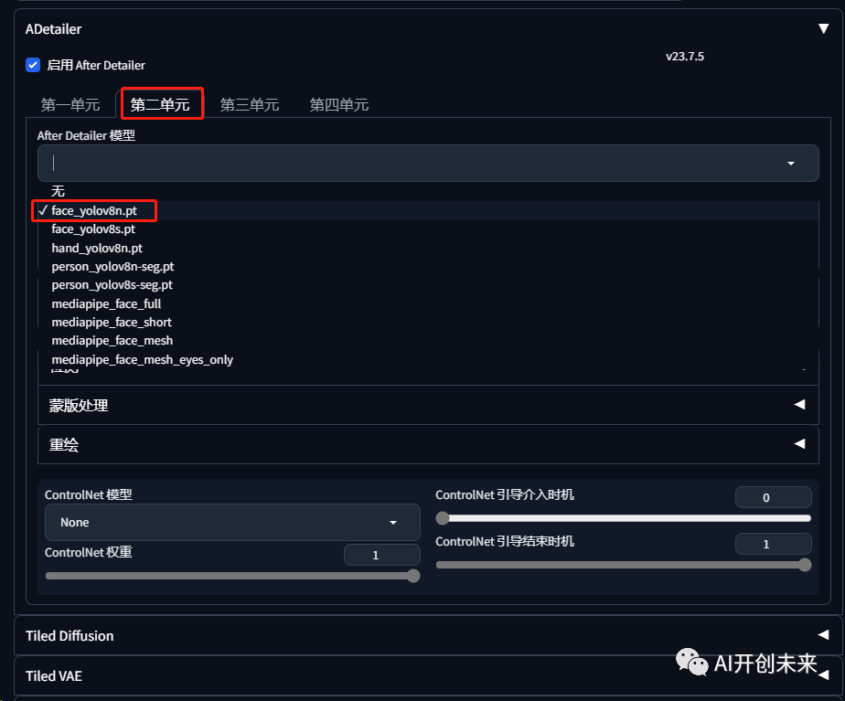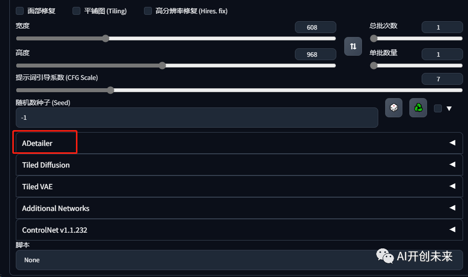 接着我们回到初始页面,页面就会多出After Detailer插件选项。