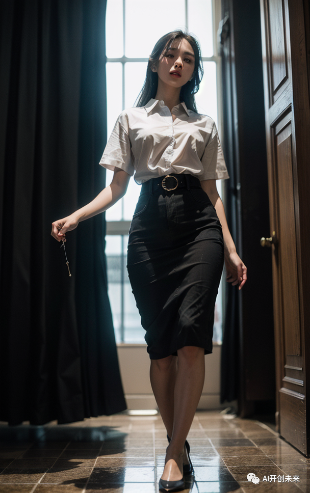 正向提示词:best quality, masterpiece, (photorealistic:1.4), 1girl, shirt with collars, waist up, dramatic lighting, from below,(full body:1.2), depth of field