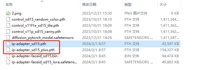 我们利用contronet控制类型IP-Adapter来垫图,提前下载对应模型,放入stable-diffusion-webui\models\ControlNet目录。
