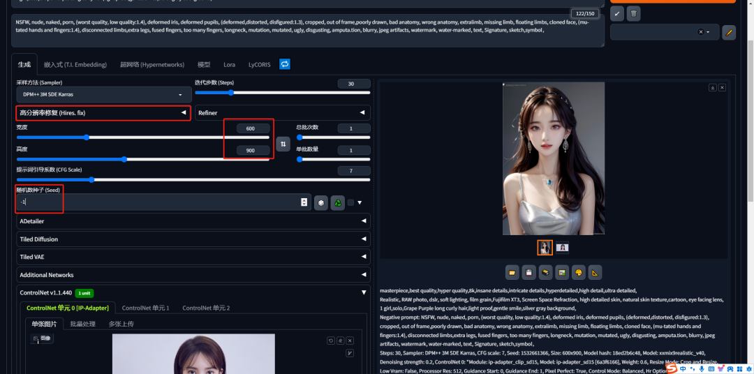 等你生成出自己满意的图片后,复制图片seed值,把随机中子数的-1值改为刚复制的seed值
