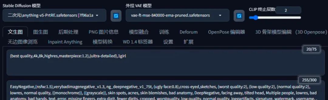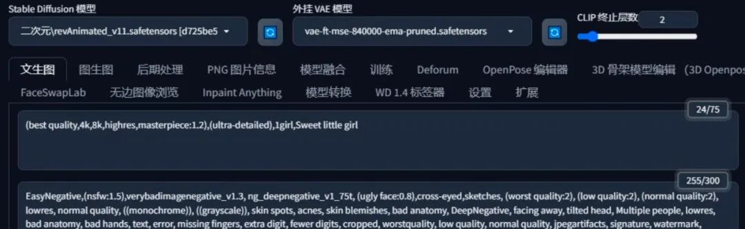 3. 设置完ControlNet之后,选择一个模型,提示词可以简单的写一些,也可以不写。