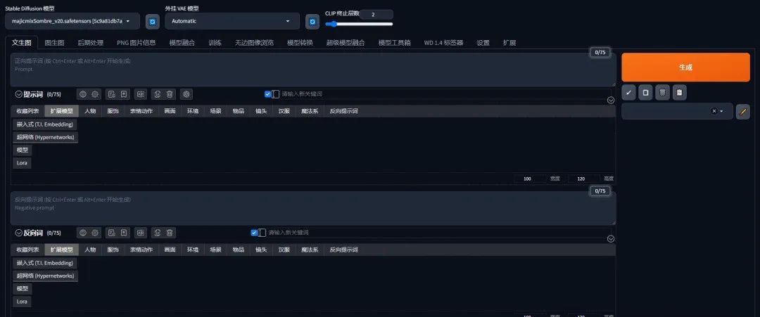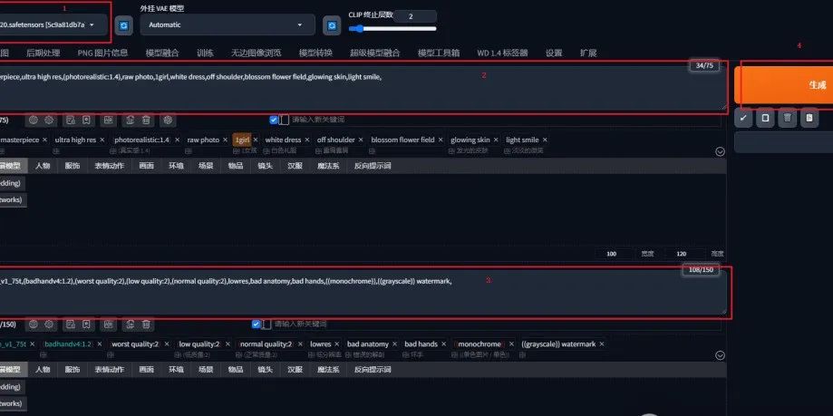 选择模型,填写正反向提示词,配置参数,启动。详细介绍请看下一篇文章