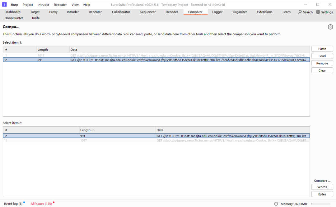 可以用来对比两个数据包中不同的内容,不同的内容将高亮框选