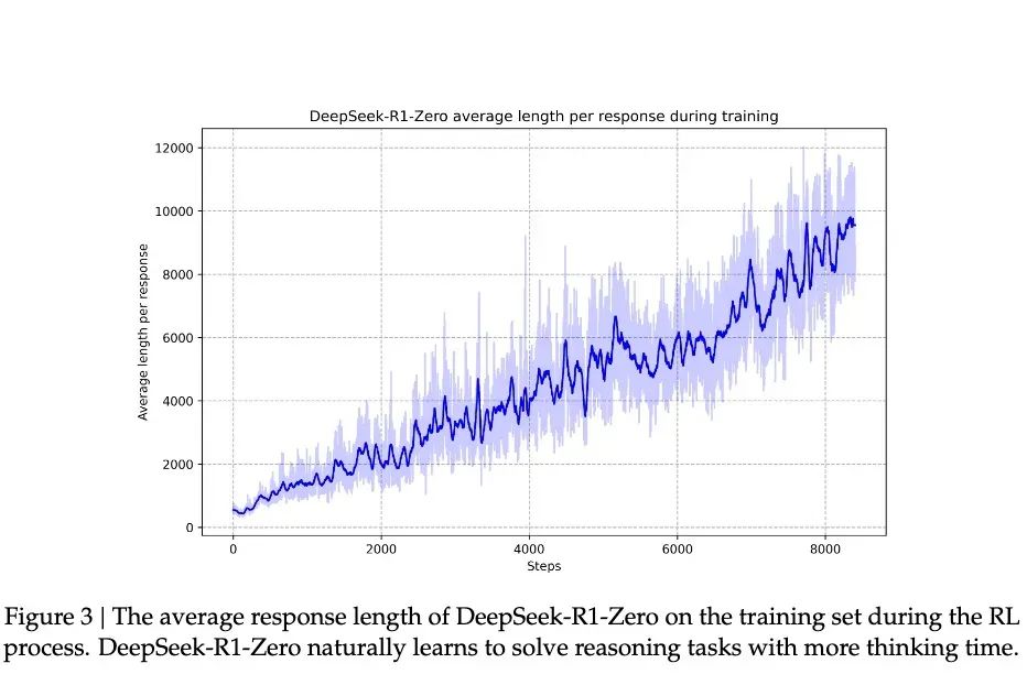 因为根据DeepSeek的研究,模型的进步并非均匀渐进的。在强化学习过程中,响应长度会出现突然的显著增长,这些"跳跃点"往往伴随着解题策略的质变。这种模式酷似人类在长期思考后的突然顿悟,暗示着某种深层的认知突破。