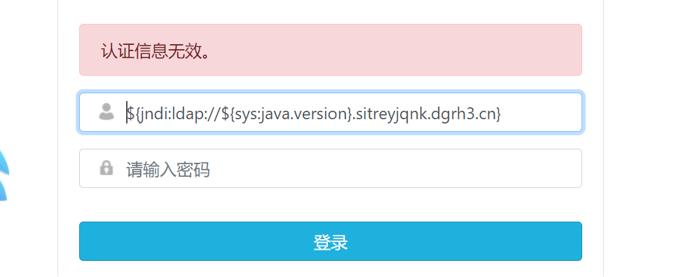 在登录页面尝试,密码登录时,通过插件发现了在参数name= ,eventide=处存在Log4j漏洞。