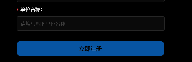 在Web页面注册新用户,尝试登录进后台时,发现其存在白名单的单位名称的限制,无法进行注册。