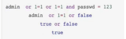 select * from users where ='admin' or '1'='1' or '1'='1' and passwd='213'