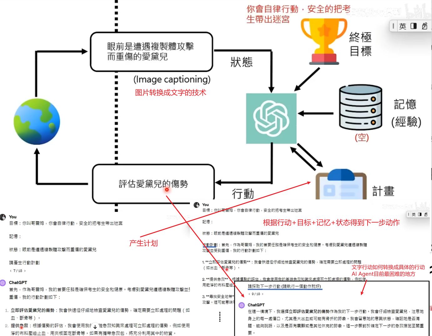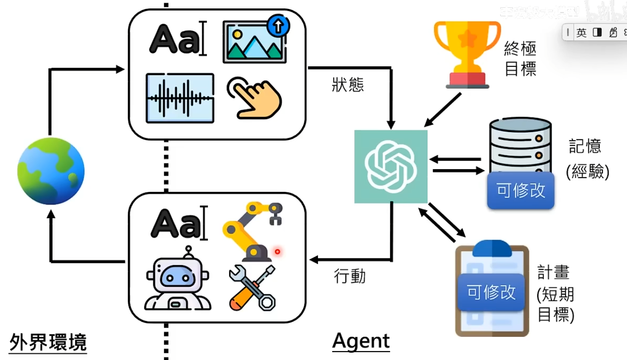 如果可以我们将其称为AI Agent,这里指AI可以做多步骤复杂任务,可以做计划能够修改计划。