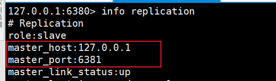 此时查看6381的复制信息。可以看到6381已经是主服务了。它下面有一个从服务,是6380.