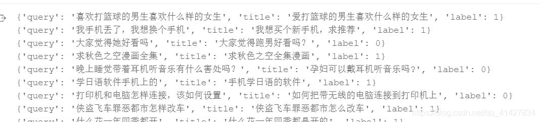 LCQMC:语义相似度任务,输入两个句子,输出两个句子是否相似。
