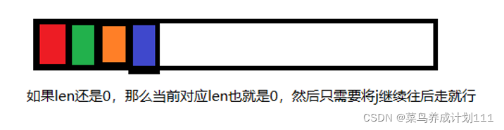 (3)如果不相等时,且上一次公共前后缀为0,len=0,让j继续往后走。