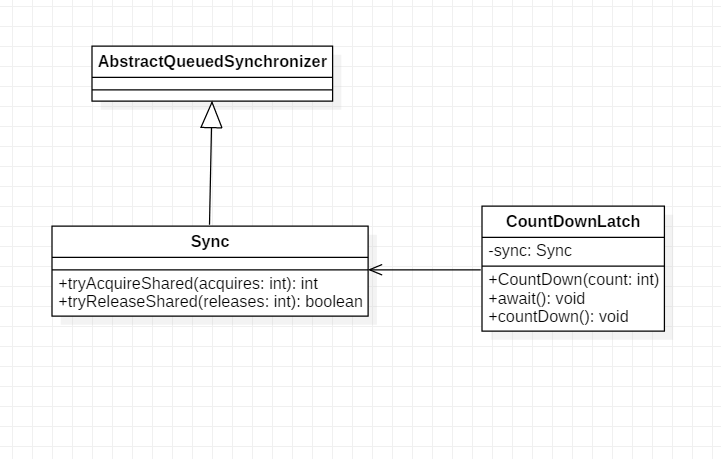 CountDownLatch是使用AQS实现的,使用AQS的状态变量存放计数器的值。