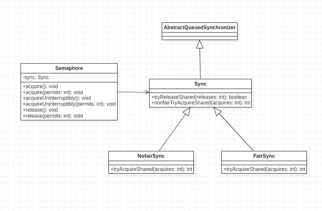 由图可知,Semaphore还是使用AQS实现的,Sync只是对AQS的一个修饰,并且Sync有两个实现类可以选取获取信号量时是否采用公平性策略(默认为非公平性的)。