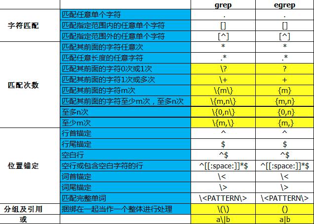 ^:行首锚定;用于模式的最左侧; $:行尾锚定;用于模式的最右侧; ^PATTERN$:用于PATTERN来匹配整行; ^$:空白行; ^[[:space:]]*$:空行或包含空白字符的行; \< 或 \b:词首锚定,用于单词模式的左侧; \> 或 \b:词尾锚定,用于单词模式的右侧; \<PATTERN\>:匹配完整单词; 单词:非特殊字符组成的连续字符(字符串)都称为单词;