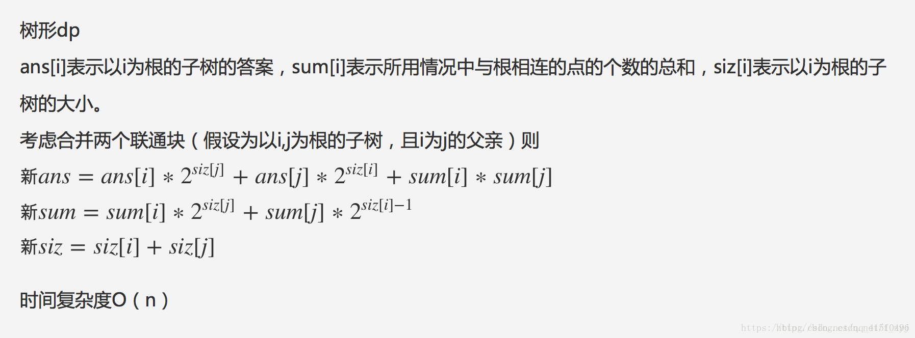 f[x]=(f[x]*cur[size[e[i]]]+f[e[i]]*cur[size[x]]+sum[x]*sum[e[i]])%p;