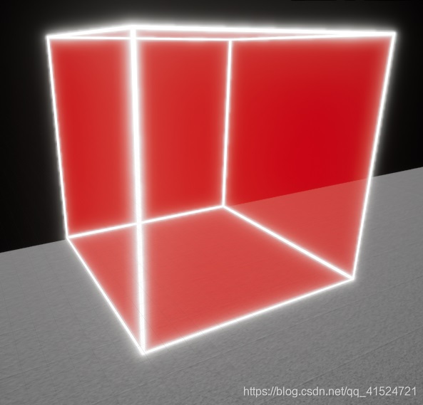 方块的边缘线条材质,是根据UV坐标判定的材质,因视效要求,其边是完全"硬"的。也就是说,比如uv.x<0.1,自发光为90;一旦大于0.1,自发光就是0。