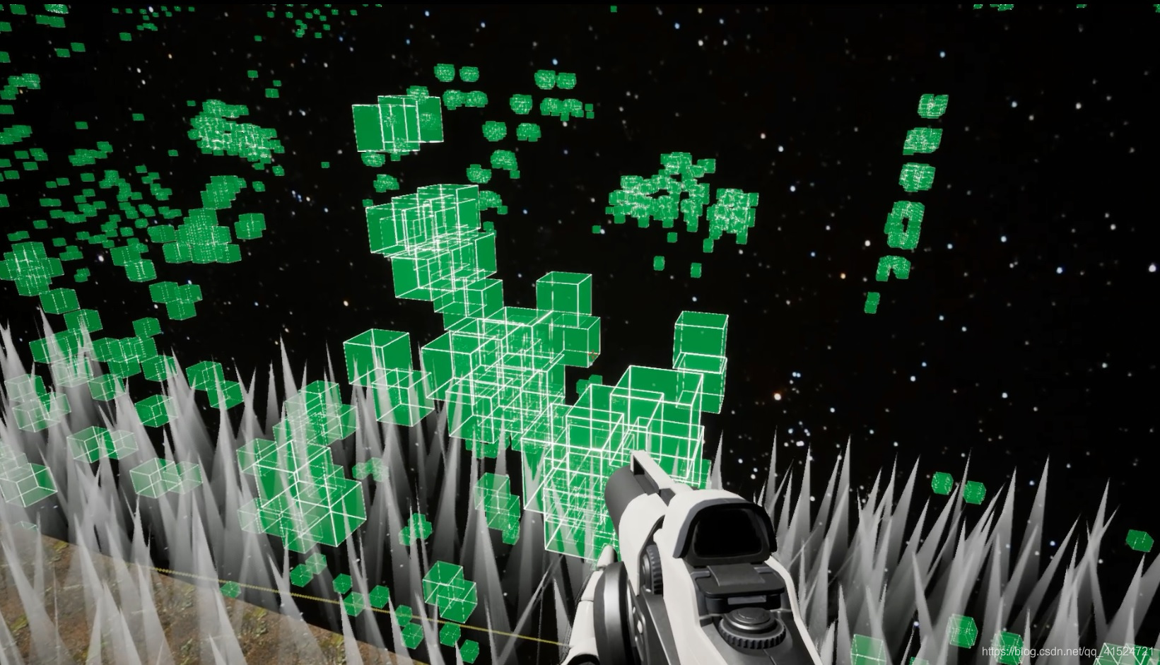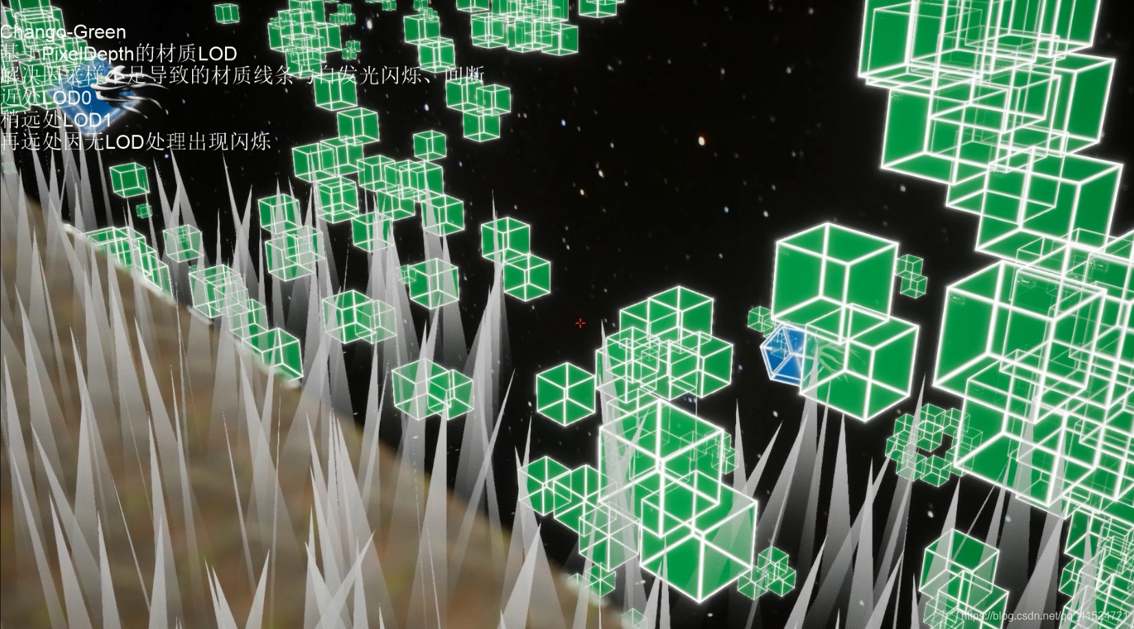 2.一旦拉远,因TAA关系,线条开始闪烁,自发光开始闪烁;线有时变得过分细,自发光被削弱(无AA,FXAA,TAA):