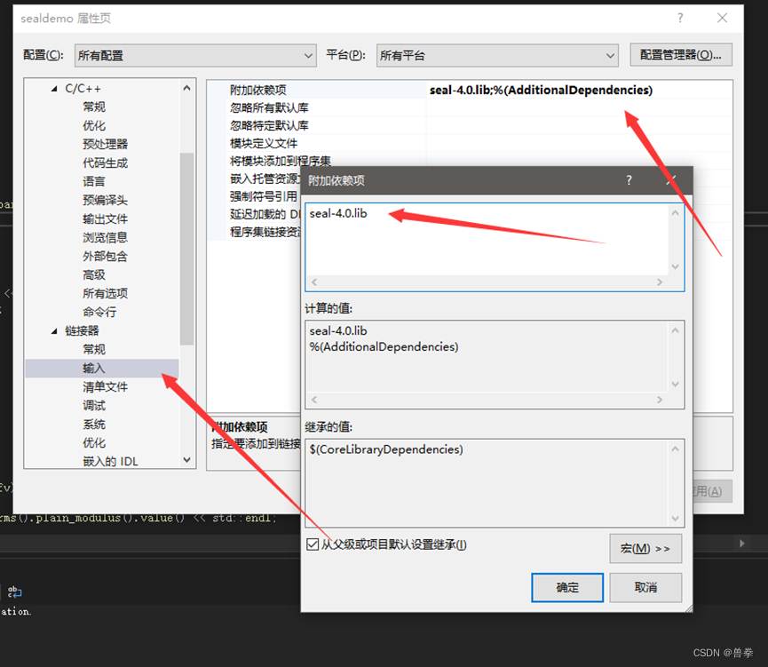 后来因为项目需要把SEAL部署到Linux服务器上,然后在win上用Visual Studio进行远程开发,基本的部署没啥差别,要注意的点是,在添加链接器->输入->附加依赖项的时候,在win上直接是加一个seal4-4.0.lib, 在配置远程环境的时候要添加的是“/usr/local/lib/libseal-4.0.a”