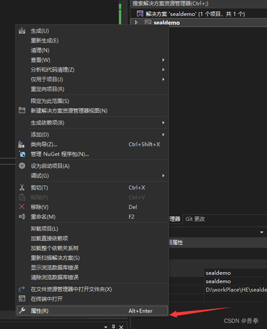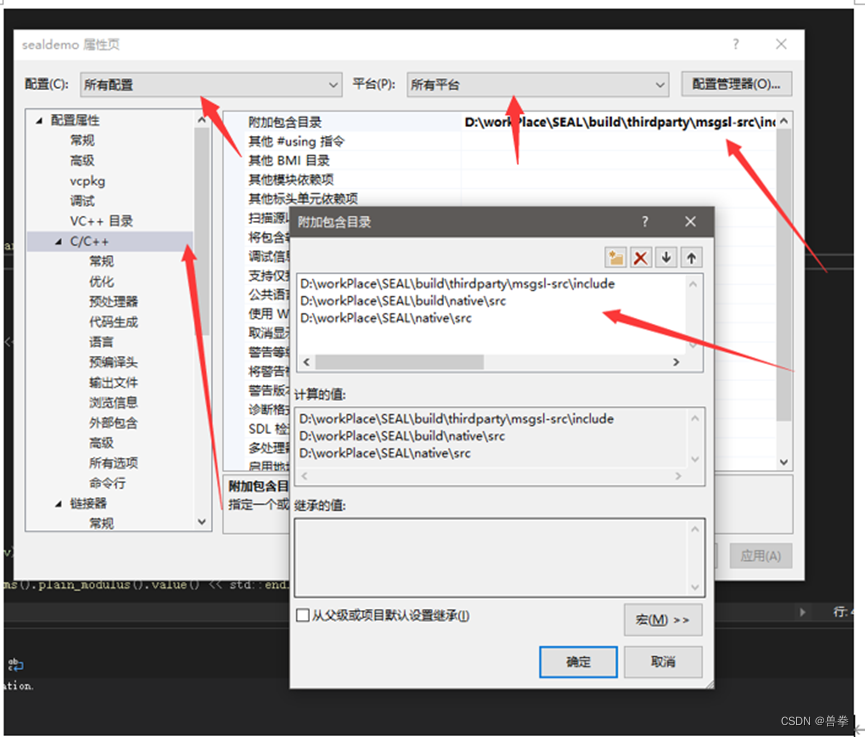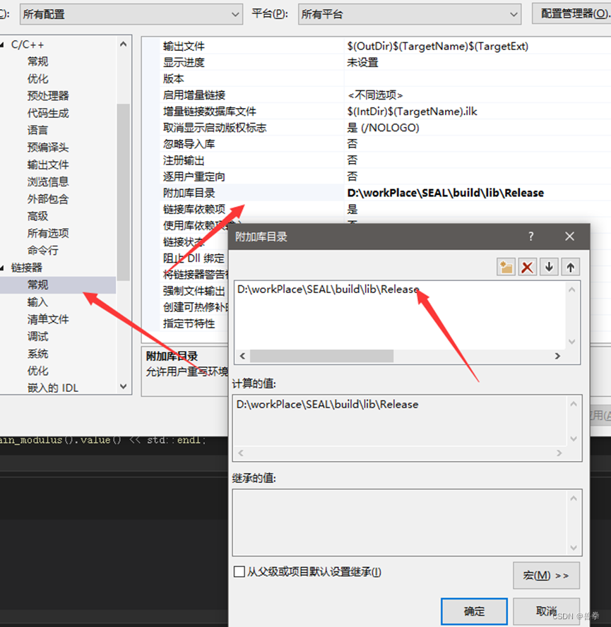 执行完毕后使用Visual Studio 2022创建一个新项目,然后进入项目属性编辑附加包含目录,C++语言标准,以及链接器,最后在附加连接器中添加seal库。