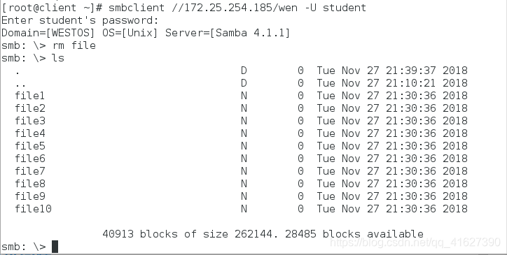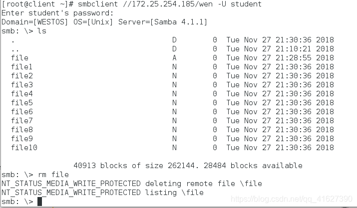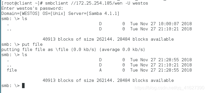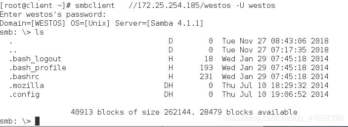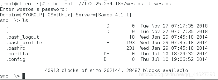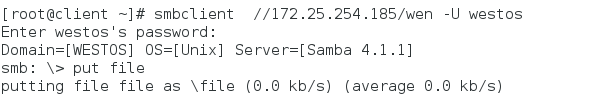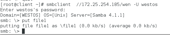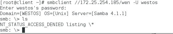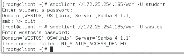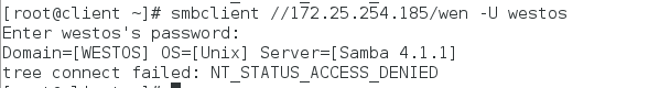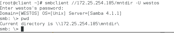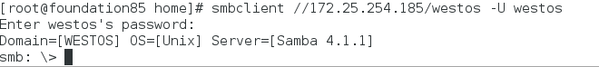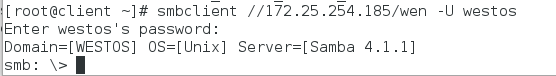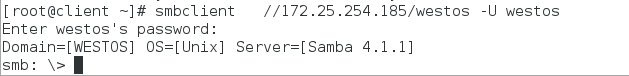 指定用户登陆:smbclient //172.25.254.152/westos -U westos