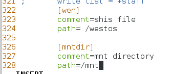 3)samba的配置文件:vim /etc/samba/smb.conf ##修改完重启服务