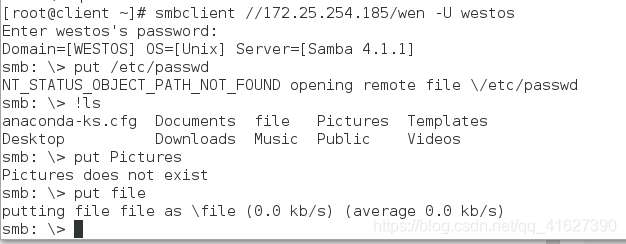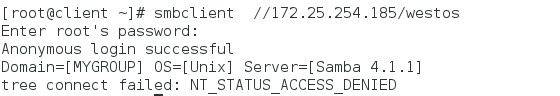 匿名登陆:smbclient //172.25.254.152/westos ##登陆不上