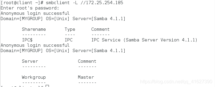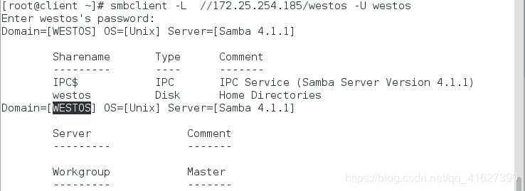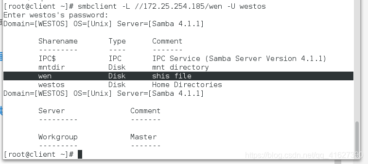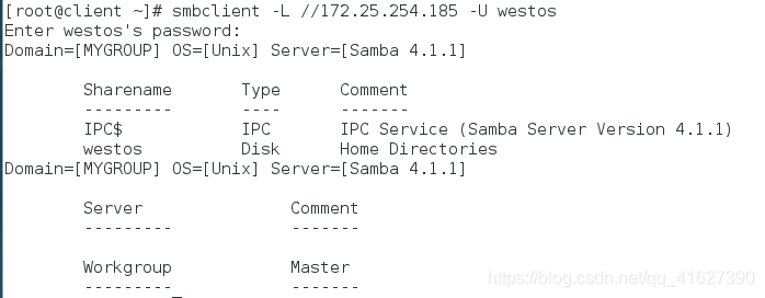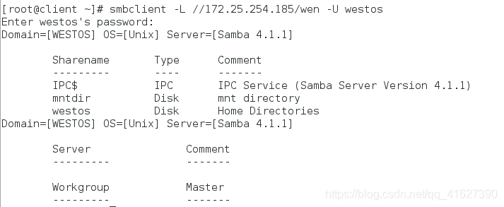 以用户身份查看:smbclient -L //172.25.254.185 -U westos